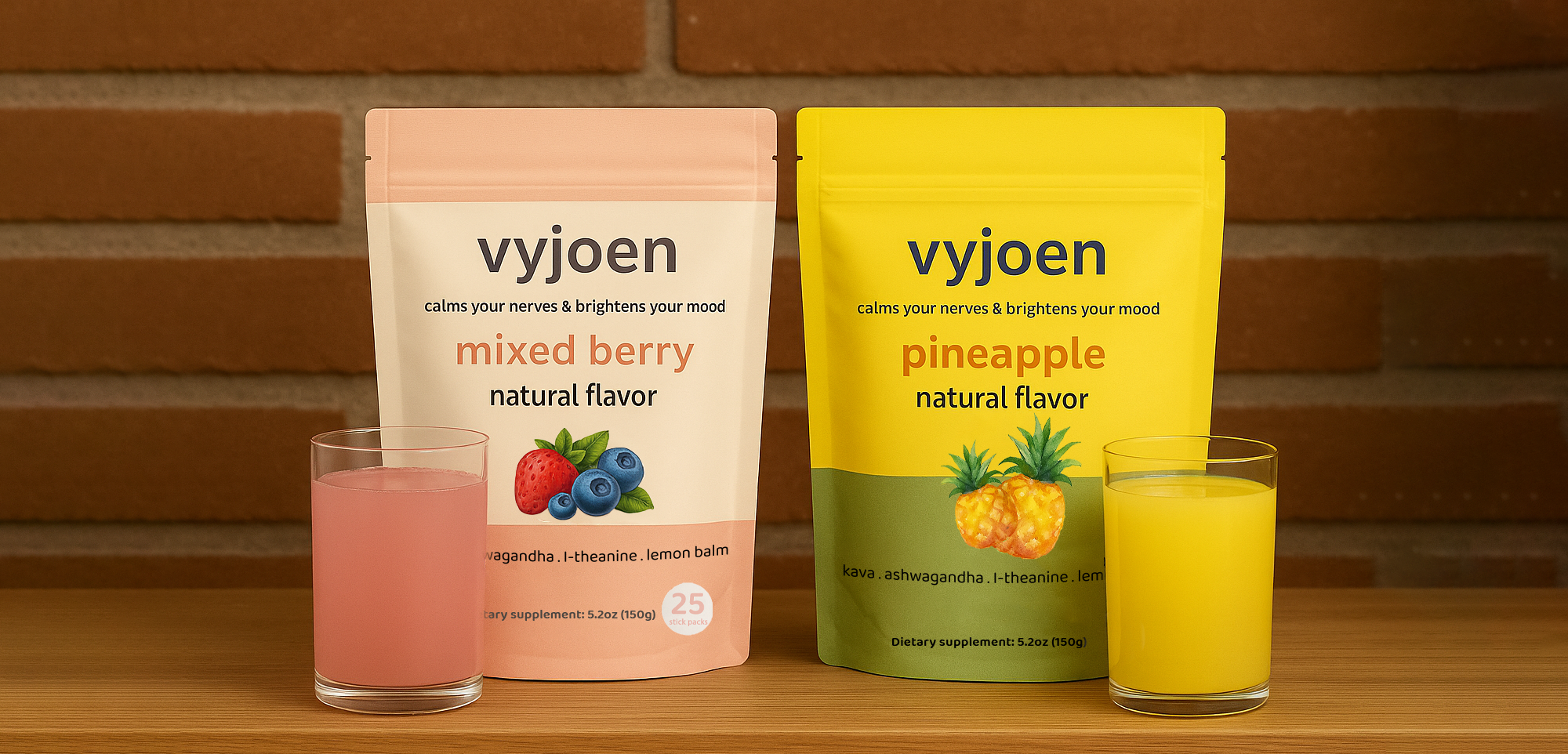 Vyjoen Relax delivers a great-tasting medley of the potent and powerful properties of Kava, Ashwagandha, Lemon Balm, and L-Theanine for a happier, worry-free you.