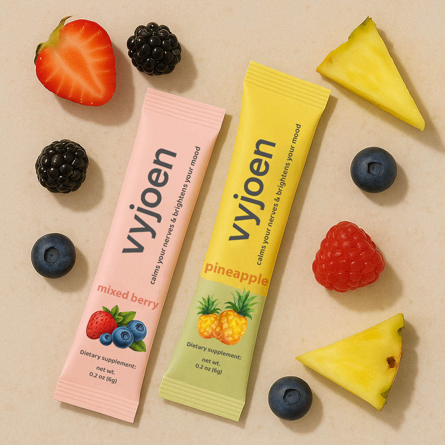 Vyjoen Relax delivers a great-tasting medley of the potent and powerful properties of Kava, Ashwagandha, Lemon Balm, and L-Theanine for a happier, worry-free you.